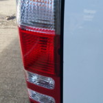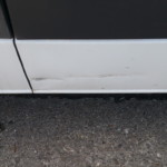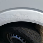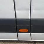 - Insbesondere die Beifahrerseite ist Zeuge und Leidtragender von vielen Begegnungen mit der Umwelt – übersät mit Schrammen und behelfsmäßig reparierten Kaltverformungen. Man erwartet mittlerweile einiges, aber das hier ist doch schon heftig. Rückleuchten zeigen die Niederschlagsmengen der letzten Regenfälle zuverlässig an und das Wasser schwappt lustig hin und her.