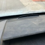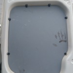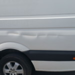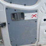 - Kleinere Macken an Tür, ein paar Hagel(?)-Einschläge auf den Seitenwänden, eine lange Schramme an der Fahrerseite hinten, die Hecktüren ziemlich fertig. Eine Nebelleuchte mit zerbröseltem Glas, eine Stoßstangenecke hinten braucht Aufmerksamkeit.
