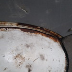 - Rust. Much rust. All over. Partially covered up with some white paint.